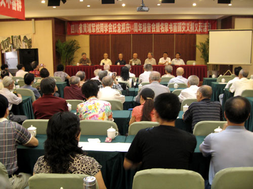 6月16日,四川省黃埔同學會隆重舉辦名家書畫賑災義捐義賣活動,紀念黃埔軍校建校84周年。省黃埔同學會會長張修忠、副會長曾廣文、張啟東、顧問李基中、秘書長葉學成及在蓉理事、榮譽理事、后代聯工委主副委、委員、成都市五城區部份黃埔同學、親屬共150余人參加活動。據不完全統計,汶川發生地震后,全省黃埔同學、后代親屬以不同形式向災區捐款捐物總額已超過200萬人民幣。此次,大家踴躍捐獻了130余幅書畫作品和收藏品,黃埔同學、后代親屬爭先恐后地付款購買義賣的書畫作品,1個小時左右即賣出作品100余件,籌集善款7萬余元。