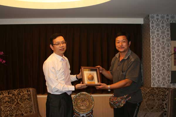 參訪團與臺北市臺海兩岸經貿文教交流協會蔡孟勛理事長互贈禮物