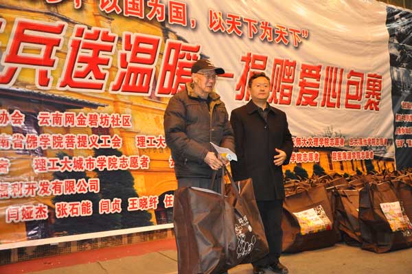 會后,由昆明市大學生愛心家園組織300名大學生,于當天將90份愛心包裹送到在昆抗戰老兵手中。其它“愛心包裹”將用郵寄的方式送至各地、州、市的每個抗戰老兵。