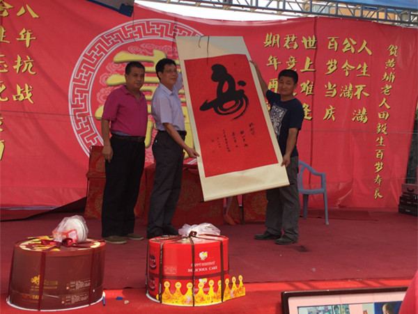 8月20日是黃埔同學、抗戰老兵田毅生百歲生日,陜西省黃埔軍校同學會秘書長李團社帶領機關同志上門為老人祝福賀壽,并送上由知名書畫家書寫的“壽”字一幅和慰問金。