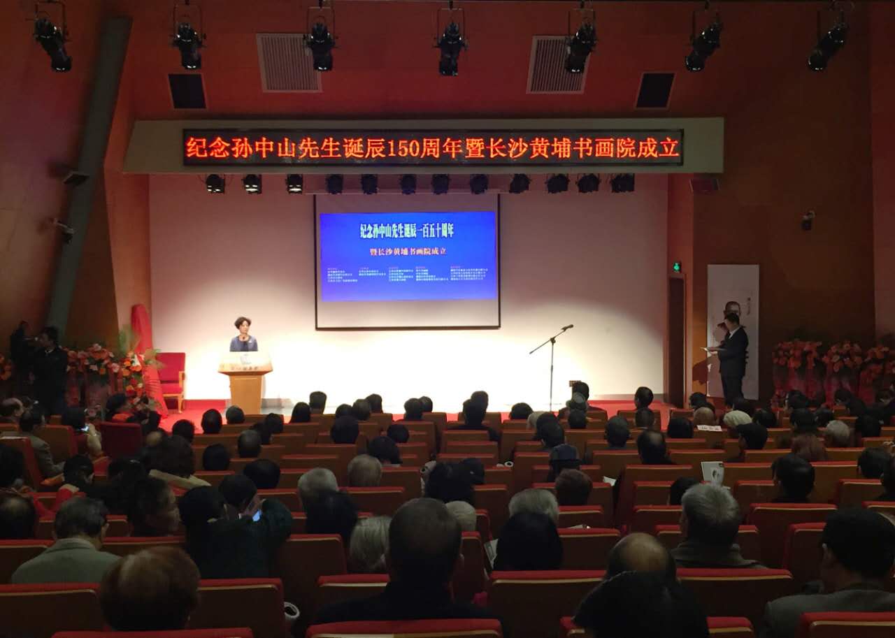 11月12日,由湖南省黃埔軍校同學會、長沙市黃埔后裔聯誼會、長沙黃埔書畫院共同承辦的“紀念孫中山先生誕辰150周年暨長沙黃埔書畫院成立揭牌儀式”在長沙市圖書館報告廳隆重舉行。湖南省委統戰部劉權巡視員出席活動并講話。她指出:今天我們共同緬懷孫中山先生的寶貴精神遺產,以文化傳承黃埔精神,對加強兩岸書畫交流合作,推動兩岸和平發展,共同致力于實現中華民族偉大復興很有意義。長沙黃埔書畫院深入挖掘前輩手跡,潛心蒐閱后代珍藏,為傳承和宣傳發揚亙古不磨的黃埔精神擴展影響再添新平臺。