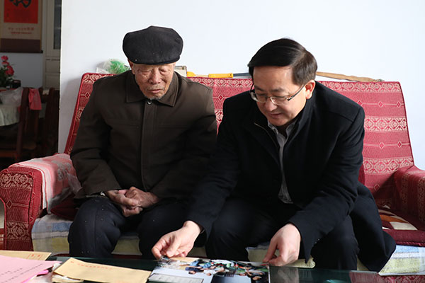 1月23日,河南省委統戰部副部長曾垂瑞在省黃埔軍校同學會辦公室主任張梅枝的陪同下,看望慰問了省黃埔軍校同學會副會長張學韜、樊群,向他們致以親切慰問和新春祝福。