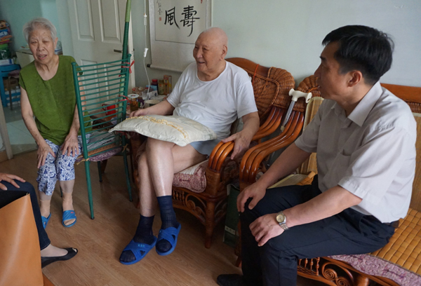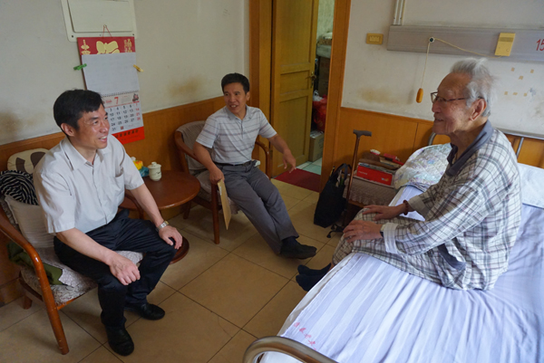 走訪中,市黃埔軍校同學會秘書長商駿帶領全體機關干部逐戶登門慰問,將茶葉、綠豆等各種防暑降溫用品及時送到黃埔老人手中,并將黨和政府的關懷送到黃埔會員心中。每到一戶商駿秘書長都會關切的詢問老人身體情況,特別叮囑高溫時節要注意飲食起居,健康平安度過酷暑。同時表示黃埔老人是我會的寶貴財富,感謝老人們在我會的發展及兩岸交流中付出的心血和力量,希望老人們繼續關心我會工作,多多獻計出力。黃埔老人及家屬表示感謝領導及機關干部冒署前來看望,紛紛表示將繼續發揚黃埔精神,發揮自身優勢,為建設美麗天津、促進祖國和平統一貢獻綿薄之力。并希望市黃埔軍校同學會今后工作蒸蒸日上。