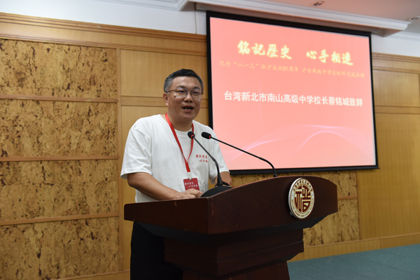 上海市黃埔軍校同學會會長朱純在致辭中指出,南山中學是一所歷史悠久的學校,與上海、與抗戰、與黃埔有著一份特殊的緣分。從一所學校的發展變遷、一個家庭的分離聚合,也折射出了一段歷史,兩岸關系曾經走過不同的道路,給同胞命運帶來不同影響,無數家庭忍受骨肉分離的悲劇,給兩岸同胞留下刻骨銘心的傷痛。同時,也印證了兩岸同胞始終心之相系、情之相融,本來就是血脈相連的一家人,也詮釋了此次活動的主題“銘記歷史 心手相連”。