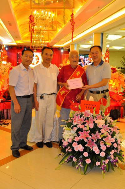 華廷凱現場致祝壽辭,向楊瑞堂老人轉達了省委統戰部和省黃埔軍校同學會的問候和祝福,為楊老掛上《黃埔》雜志社為百歲黃埔同學專門制作的“黃埔壽星”綬帶,并送去慰問金和鮮花花籃。