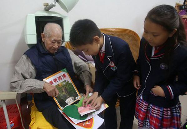 "那時候,這位黃埔老兵已經成為孩子們心中的英雄,這不,重陽節來了,孩子們想念起他來了,特地向學校提出去看望文爺爺,我們鼓勵了他們采取行動。" 中黃外國語小學校長李賦說,讓老師們欣慰的是,這群 00 后學生,在重陽節的敬老舉動,沒有局限于爺爺奶奶,而是有了更寬的視野。