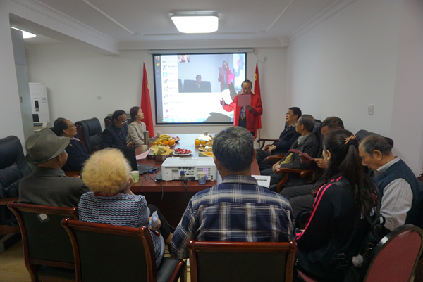 10月17日上午,以“賞菊重陽·親愛精誠”為主題的重陽節座談會在會機關召開,工作人員將《慰問信》及鮮花送到會員及老干部手中以表最誠摯的節日祝福。為了傳承黃埔精神,弘揚尊老敬老的優秀傳統,天津市黃埔軍校同學會安排了詩詞茶話、有獎問答、健康咨詢、家庭法律咨詢等形式多樣的現場活動與老人們進行互動,更是采取了網絡視頻的形式,讓孟廣杰等在外省市居住及遠道不能前來的會員與現場同學及老干部見面。老友齊歡聚,濃濃黃埔情,大家圍坐一堂,紛紛發言,共慶重陽佳節,共謀機關發展,共話天津未來。幾位黃埔老人和后代還帶來了特意創作的詩詞及書畫作品等與大家分享交流表達情意,現場充滿歡聲笑語,氣氛喜氣和諧。天津市黃埔軍校同學會副會長王朝亮、副會長黃炳坤、理事王兆澍、原秘書長張良奎、部分黃埔后代及機關全體干部等20余人參加座談會。