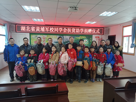 省黃埔軍校同學會高度重視精準扶貧工作,主動對接省委統戰部扶貧工作點,為全省脫貧攻堅大局貢獻力所能及的力量。自2016年來,已連續四年對宜昌市夷陵區黃花鄉張家口小學進行精準扶貧及捐資助學,今年又向2名特困學生捐贈了助學款,向10名貧困生學生捐贈了學習用品,省黃埔軍校同學會秘書長伍啟華還勉勵困難學生不畏困難、努力學習、胸懷大志、報效祖國。
