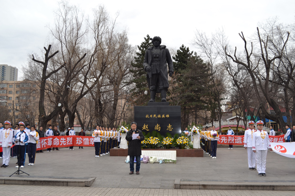 4月4日,黑龍江省黃埔軍校同學會與哈爾濱市第116中學在哈爾濱市尚志公園舉辦了以“緬懷革命先烈、珍惜幸福生活”為主題的清明祭奠活動,共同緬懷黃埔同學的杰出代表、東北抗日聯軍創始人和領導人趙尚志將軍。黃埔親屬代表、同學會機關干部、第116中教師代表及全體同學參加了祭奠活動。