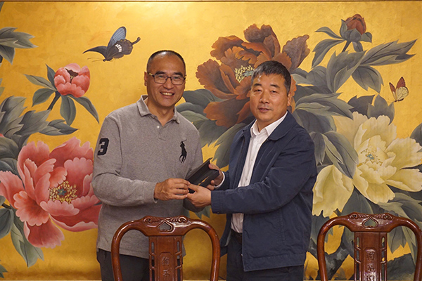 天津市黃埔軍校同學會秘書長商駿與張聿文團長互贈禮品