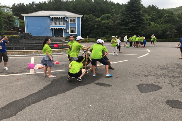 夏令營營員用自己搭建的羅馬炮架進行軍事訓練