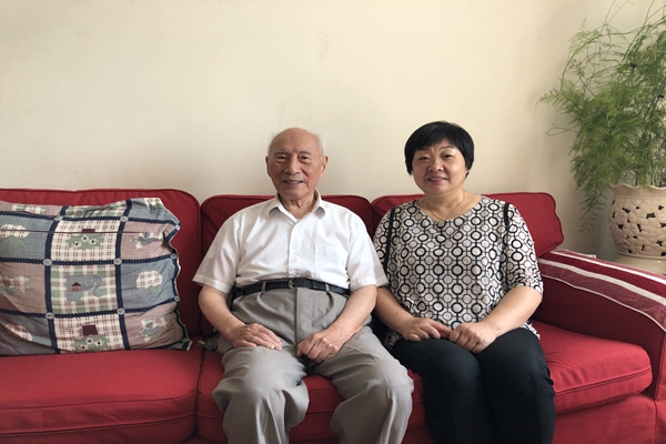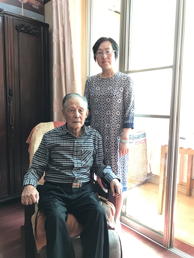 上海市黃埔軍校同學會秘書長姚素妹慰問朱純會長(左)
