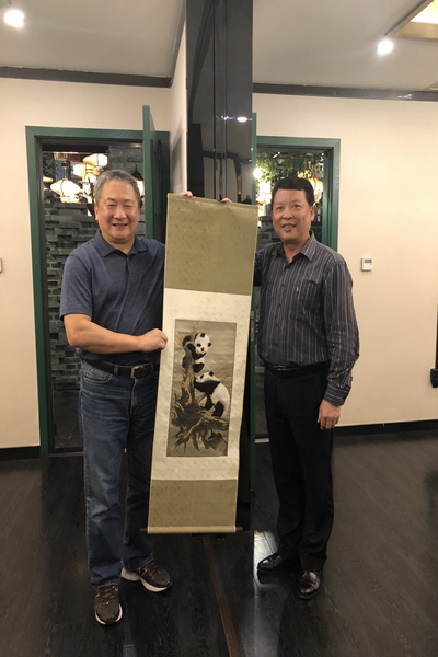 任曉鳴秘書長表示歡迎鄭文彬先生一行能在四川多走走多看看,他還代表省黃埔軍校同學會向鄭文彬先生一行贈送紀念品并合影留念。
