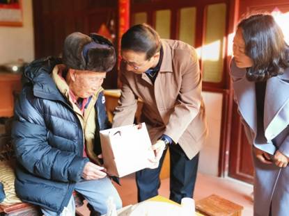 慰問組每到一戶,都與黃埔同學親切交談、追憶往事,詳細詢問他們的健康狀況和家庭生活情況,給他們送去慰問金和紀念品,向他們致以新年的問候和祝福。