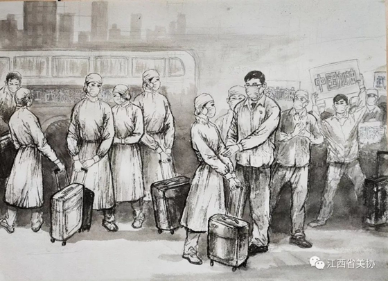江西省黃埔親友聯誼會平德威副會長創作了《最美逆行者》和《抗疫天使》兩幅作品,黃埔親友宋絢麗創作歌曲《再相聚》,獻給奮戰在一線的醫務工作者,為抗擊疫情吶喊助威。
