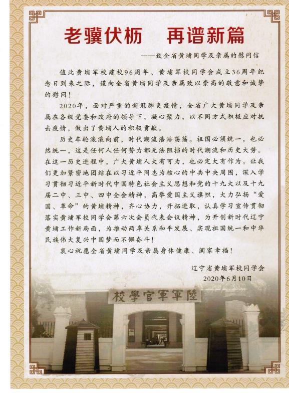 遼寧省黃埔軍校同學會以發慰問信的形式開展紀念黃埔軍校建校96周年活動