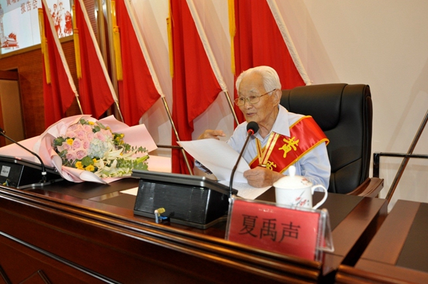 活動在隆重而熱烈的氣氛中拉開序幕,101歲的黃埔軍校十四期同學夏禹聲首先作事跡報告,為貴陽學院的師生們講述他就讀黃埔、參加抗戰、參與受降的經歷。年逾百歲的夏老,精神矍鑠,語言樸實卻不失幽默。夏老說,“回顧自己的百年人生,我始終不忘自己是一名黃埔學生,是一名抗戰老兵,弘揚‘愛國革命’的黃埔精神,是我應盡之責?!弊詈?,夏老勉勵青年學子們,珍惜寶貴的青春年華,心無旁騖努力學習,用實際行動為實現中華民族偉大復興貢獻自己的力量。
