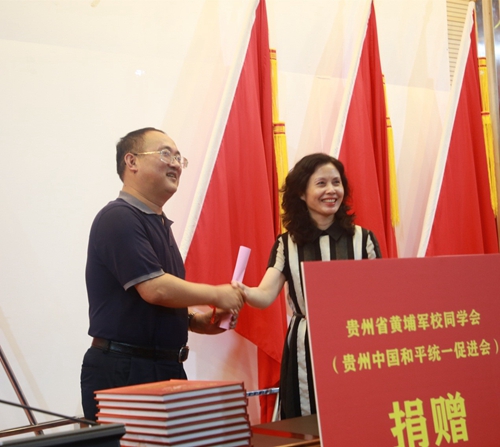 活動中,貴州省黃埔軍校同學會秘書長楊震環向貴陽學院贈送了由貴州省委統戰部、貴州省黃埔軍校同學會(貴州中國和平統一促進會)、貴州廣播電視臺聯合出品的紀錄片《橫空出世——貴州抗戰記憶》光盤,以及《黃埔崢嶸》、《多彩貴州黃埔情》、《黃埔》雜志特刊等書籍、雜志,貴陽學院黨委副書記趙福菓代表接受捐贈。