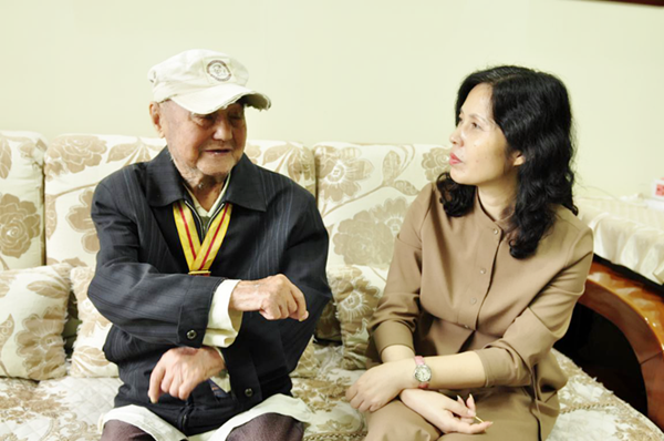每到一處,秘書長楊震環都與黃埔抗戰老兵親切交談,在為他們送去1000元慰問金的同時,送去了誠摯的問候和美好的祝福,祝福他們家庭幸福、健康長壽;與他們同憶難忘的烽火歲月,共話黃埔精神的傳承;感謝他們為奪取抗戰勝利、爭取民族獨立作出的積極貢獻。楊震環說,這些參加過抗戰的黃埔同學是我們的寶貴財富,我們要積極收集史料、大力宣傳他們的抗戰事跡,弘揚“愛國革命”的黃埔精神,凝聚力量促進祖國和平統一。同時,我們更要關心關注他們的生活、健康狀況,為他們安享晚年積極創造條件。