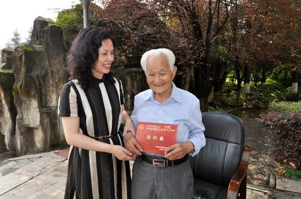 在中國人民抗日戰爭暨世界反法西斯戰爭勝利75周年之際,為了大力弘揚抗戰精神,加強愛國主義教育、弘揚和培育民族精神,貴州省黃埔軍校同學會制定了《關于開展紀念中國人民抗日戰爭暨世界反法西斯戰爭勝利75周年系列活動方案》,對開展紀念抗戰勝利75周年慰問黃埔抗戰老兵專項活動進行了安排。8月啟動該項工作以來,貴州省黃埔軍校同學會機關先后看望慰問了吳弘毅、楊瑞堂、周萬政、夏禹聲等參加過抗戰的貴州健在黃埔會員,將黨和政府對黃埔抗戰老兵的關心和祝福送給他們。