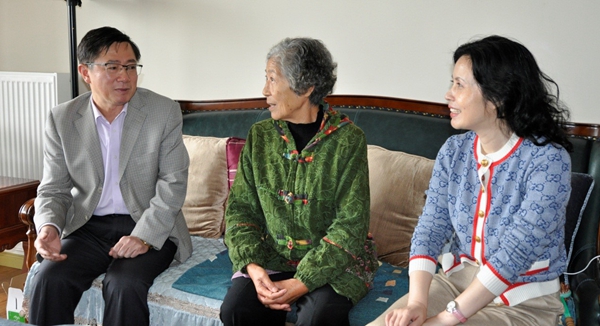 王茂愛(左二)走訪慰問抗戰將領遺孀陸素影(右二,102歲)并與家屬交流