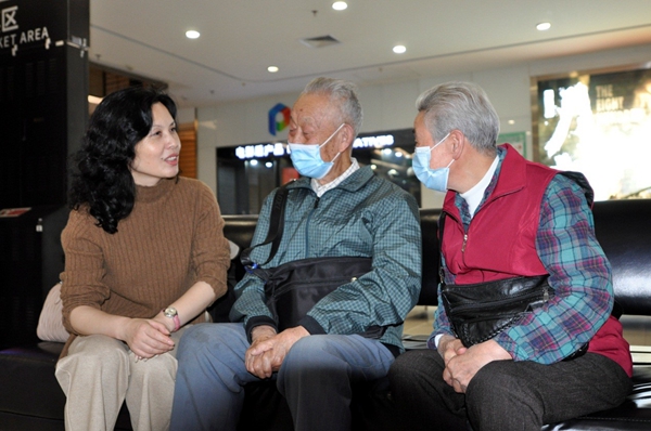 秘書長楊震環(左)與黃埔同學姬文超及老伴親切交談