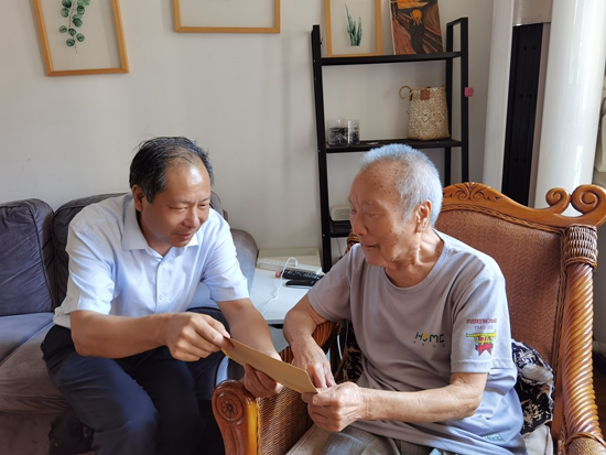 上海市黃埔軍校同學會機關干部與各區工委會專職干部分批對黃埔理事和會員進行走訪慰問。在走訪過程中,認真聽取每一位理事對工作的意見建議,仔細詢問每一位黃埔會員對于養老服務的所急、所需、所盼。進一步落實聯系服務基層制度和與黃埔會員所在養老院聯系制度,機關干部走進99歲高齡金國寶會員所在的寶山美蘭金苑養老院,與金國寶老人親切攀談,關心了解養老院生活照料和醫療照護情況,并送上誠摯的生日祝福。