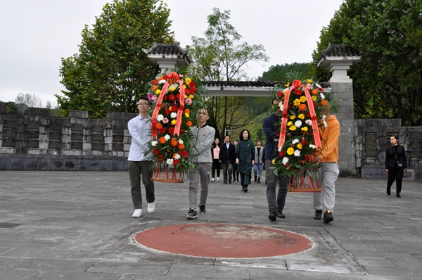 活動中,尋訪團還向抗戰英烈壇敬獻了花籃祭奠英烈,全體黨員重溫入黨誓詞。