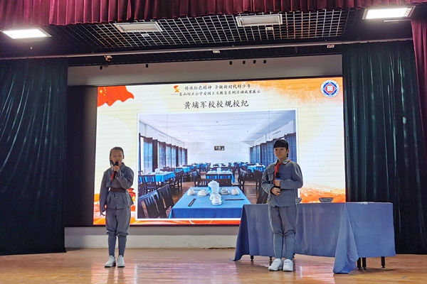 此次愛國主義教育活動是經黃埔一期賀衷寒親屬賀青女士牽線搭橋,由廣州市黃埔軍校舊址紀念館派出宣講團隊,提供展示資料,以“學、訪、講、唱、畫”為形式,對培正小學的同學們開展內容鮮活、形式新穎、吸引力強的系列愛國主義教育。在為期三周的時間里,宣講團秉承培根鑄魂的育人目標,創新宣傳教育手段,將黃埔軍校紅色歷史資源融入到學生的日常學習和課間活動中,引導培正少先隊員聽黨話、跟黨走,從一個個紅色故事中,學習革命歷史,傳承紅色精神,爭做新時代好少年。