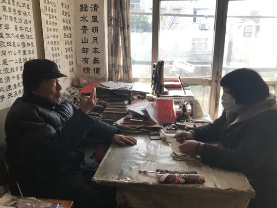 “看到你們歲過期頤,依然寄情筆墨,我既欽佩又欣慰”,姚素妹受會領導的委托專程慰問百歲老人夏世鐸、陸頌聞。促膝交談中,姚素妹介紹了我會開展的“紅色記憶與城市榮光”書畫作品征集、“黃埔精神傳薪火 百年榮光頌祖國”征文活動的有關情況。兩位百歲黃埔老人動情地表示,他們將發揮全部光和熱,以筆墨為媒,講好愛國報國的初心故事,講好聽黨話、跟黨走的同心故事,以一言一行激勵、感染更多的人。