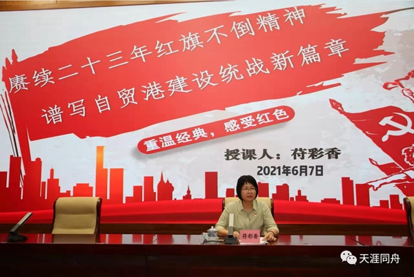 此次活動,把理論學習與實踐教育緊密結合,全體黨員首先聆聽省委常委、統戰部部長苻彩香同志作《賡續二十三年紅旗不倒精神 譜寫自貿港建設統戰新篇章》的精彩黨課,隨后,包括“團結隊”在內的六個參賽隊依次開展一系列富有思想性、挑戰性和趣味性的互動比賽,比賽過程將講好海南統戰史典型故事和唱紅歌融入每一環節,黨員們在活動中深刻體會瓊崖革命精神,激發愛黨愛國情懷。同時,互動協作、突破自我的競技比賽也讓每一位黨員體會到分工有序、積極溝通、嚴守紀律的團隊精神的重要性。