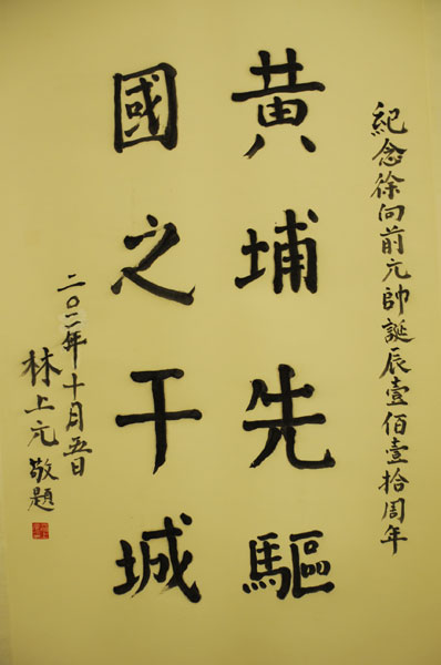 黃埔軍校同學會會長林上元在開幕式上致辭,他回顧了新中國一代開國元勛、黃埔軍校同學會首任會長徐向前元帥光輝偉大的一生,特別是他晚年為黃埔軍校同學會的成立和建設,為祖國統一大業做出的巨大貢獻。他說,我們回顧徐帥光輝的一生,緬懷他的不朽功績,就要認真貫徹中央對臺工作的方針政策,牢記黃埔宗旨,發揚黃埔精神,發揮黃埔優勢,努力促進兩岸關系和平發展,為實現徐帥老會長“實現祖國統一,建設強大祖國”的遺愿而不懈奮斗。