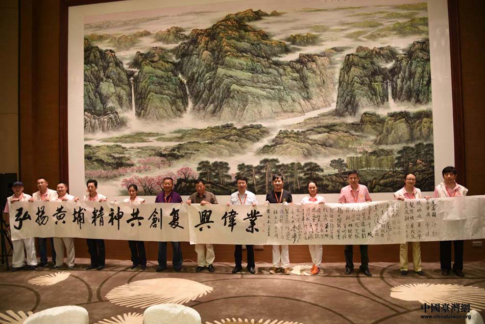 兩岸退役將軍在“弘揚黃埔精神 共創復興偉業”墨寶上簽名