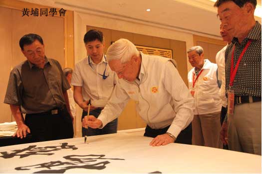 兩岸退役將軍在“發揚黃埔精神 促進祖國統一”墨寶上簽名
