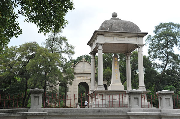 東征陣亡烈士墓園位于廣州東郊黃埔長洲島萬松嶺,是紀念黃埔軍校師生在1925年兩次東征中光榮犧牲的516位烈士的墓園。墓園占地面積約5萬平方米,由紀念坊、墓道、涼亭、墓冢和紀功坊組成一中軸線,是黃埔軍校遺址保存最為完好的一座。因為這里與廣州黃花崗七十二烈士墓的造型相似,于是民眾習慣性稱這里為“小黃花崗”。1925年,廣東革命政府為統一廣東,作好北伐準備,對陳炯明等軍閥進行了討伐,史稱“東征”。黃埔軍校師生參加了兩次東征及平定商團叛亂,鎮壓滇桂軍閥的歷次戰斗。戰斗中,他們革命目標明確,作戰勇敢無畏,在廣大工農群眾的有力支援下,與粵軍密切配合,取得了決定性勝利。歷次戰斗中,軍校師生付出了巨大犧牲的代價,譜寫了光輝的歷史篇章。