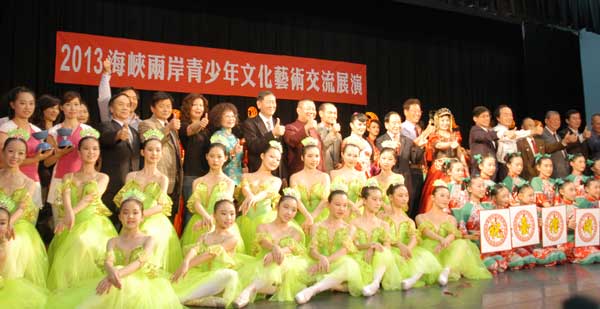 2月18日至27日,由黃埔軍校同學會、中國舞蹈家協會主辦的2013年“中華情”第四屆青少年文化藝術公益展演和交流活動在臺灣舉行。此次活動,在高雄、臺北、新竹等地演出3場,與臺南首府大學、高雄樹德中學、高雄師范大學、花蓮東華大學、臺北中國文化大學師生等進行交流。中國舞蹈家協會副主席王小燕、中央民族歌舞團青年歌手蘇都阿洛、全總文工團青年歌手莊妍妍、中央民族大學舞蹈學院師生等,與臺灣學生同臺獻藝,為臺灣觀眾送上精彩的歌舞節目和蛇年新春的祝福。