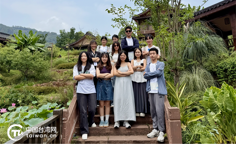 兩岸青年學子在丹棱幸福古村合影留念。(中國臺灣網記者 郁誠 攝)