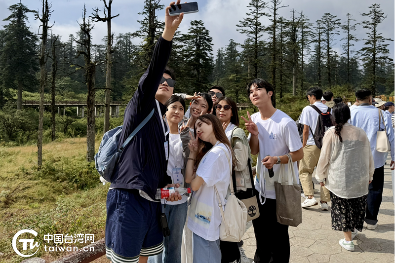兩岸青年學子在眉山之行中建立起深厚友誼,于瓦屋山登頂后合影留念。(中國臺灣網記者 郁誠 攝)