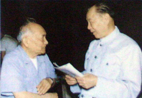 1984年6月楊成武同志與趙子立副會長(左)親切交談