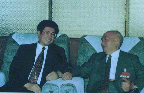 1994年6月16日全國政協副主席、中央統戰部部長王兆國與胡立教顧問親切交談