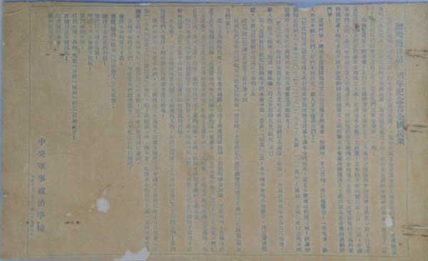 中央軍事政治學?!犊偫硎攀赖诙苣昙o念告全國民眾》的宣傳品