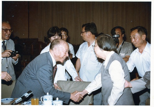 1985年,在黃埔軍校第一次會員代表大會上,鄧穎超親切會見李默庵,與他握手。