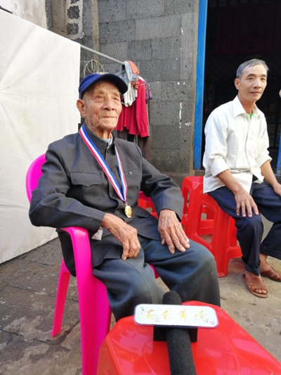 許乃斌,今年99歲,海南儋州人,黃埔軍校19期總隊通訊隊。參戰經歷:抗日戰爭、桂黔之戰。