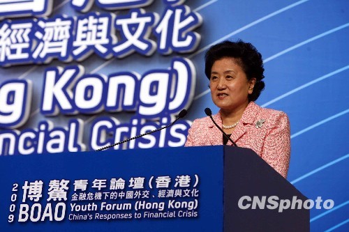 十二月六日,中共中央政治局委員、國務委員劉延東在香港會展中心出席博鰲青年論壇酒會并致辭。 中新社發 洪少葵 攝