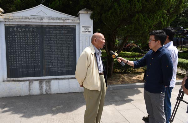 在受降紀念坊前媒體采訪黃埔軍校同學會會長林上元