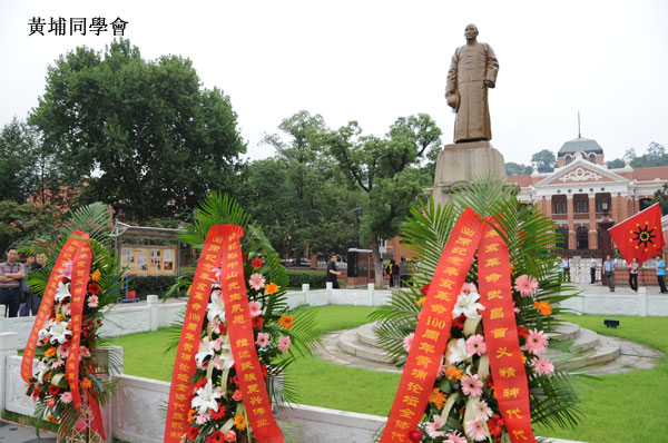 參加黃埔論壇活動的全體代表向向孫中山銅像敬獻了花籃