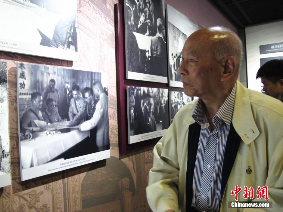 5月12日,參加第九屆黃埔論壇的兩岸黃埔組織代表、校友共赴抗戰勝利受降地湖南芷江參訪,追憶抗戰歷史。圖為黃埔軍校同學會會長林上元參觀芷江受降紀念館。中新社發 楊喆 攝