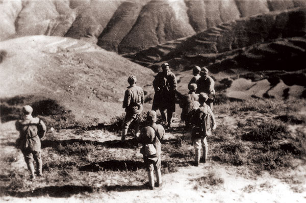 八路軍115師、129師主力在正太路以南的廣陽地區側擊西犯之敵,給日軍以沉重打擊。圖為徐向前(中間穿大衣者、黃埔1期)在廣陽指揮戰斗。