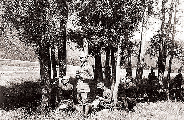 八路軍115師副師長聶榮臻(前站立者,黃埔軍校政治部秘書兼政治教官)在平型關前線偵察