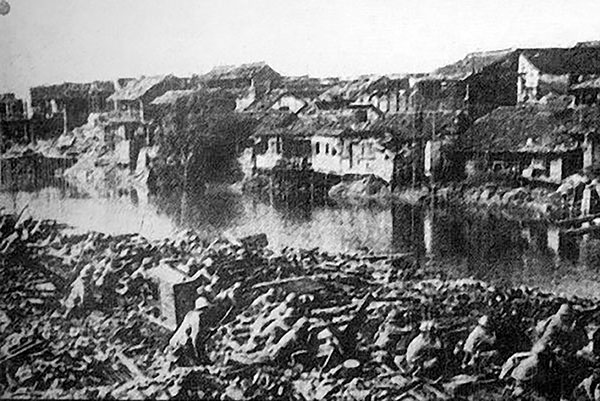 淞滬會戰,敵我在蘇州河兩岸對峙,終日激戰
